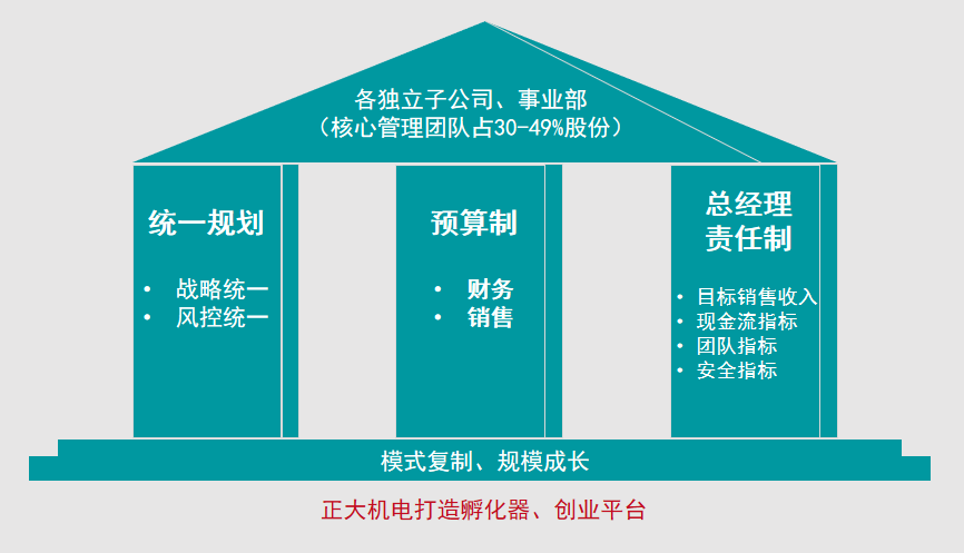 公司創始于1997年,自1998年開始投資,吸引外部優秀人才帶資金或項目,與我司通過收購、并購、加盟、投資等形式合作,并為內部優秀員工實現老板夢,成功發展了近40家公司,以廣東零壹工業技術有限公司、廣東壹電工業技術有限公司、廣東正壹大自動化設備有限公司、佛山市正大機電軸承有限公司、東莞市大晟自動化設備有限公司、東莞市正一大同德軸承有限公司、成都能大科技有限公司成為代表的創業加盟商,基本上都取得了可喜的收獲,并以正大為依托可取得長期穩定的發展。公司始終堅持“誠信、專業、創新、共贏”的核心價值觀,對有發展潛力的企業、創業團隊提供股權融資發展資金,為所有投資者、股東、員工打造了共贏的平臺。