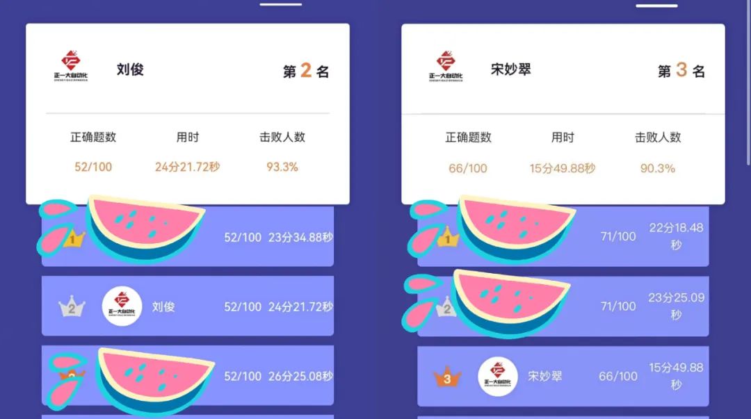 然而榮耀加冕的背后是不為人知的百分之二百的全身心投入備戰(zhàn)。從小試牛刀的熱身賽、緊張刺激的雙人PK突圍晉級賽、再到直播自答題決賽,緊湊的比賽節(jié)奏讓每一位參賽同事精神繃緊。