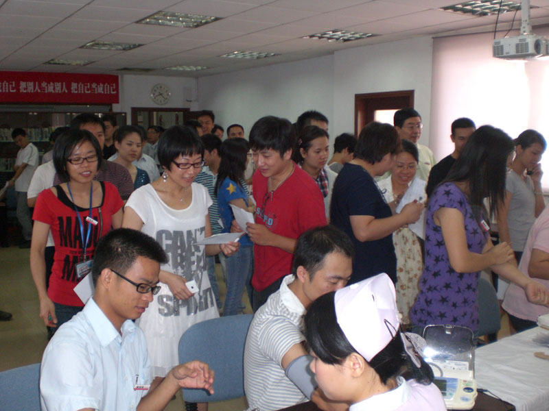 體檢的主要場所設在配套公司,當天早上8點,中心醫院的醫生們就已經準備就緒了,各個體檢項目處,逐漸排滿了前來體檢的員工,雖然當天天氣炎熱而且人較多,但并未對體檢現場的秩序帶來任何影響,充分體現了正大員工們的自覺性和紀律性,體檢工作也因此有條不紊地進行著。