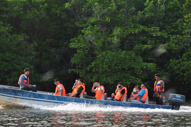 來到民丹島怎么能不去紅樹林探險呢,我們坐著小船,駛入了一片原始的樹林,在這里,景色是那么的自然,完全沒有人為的雕飾,河道越來越窄,兩旁的紅樹愈顯茂密,越是深入,紅樹的根的形狀也跟著變化,時不時還能看到歇息在樹上的松鼠、蜥蜴、蛇以及跳躍在樹上的猴子。
